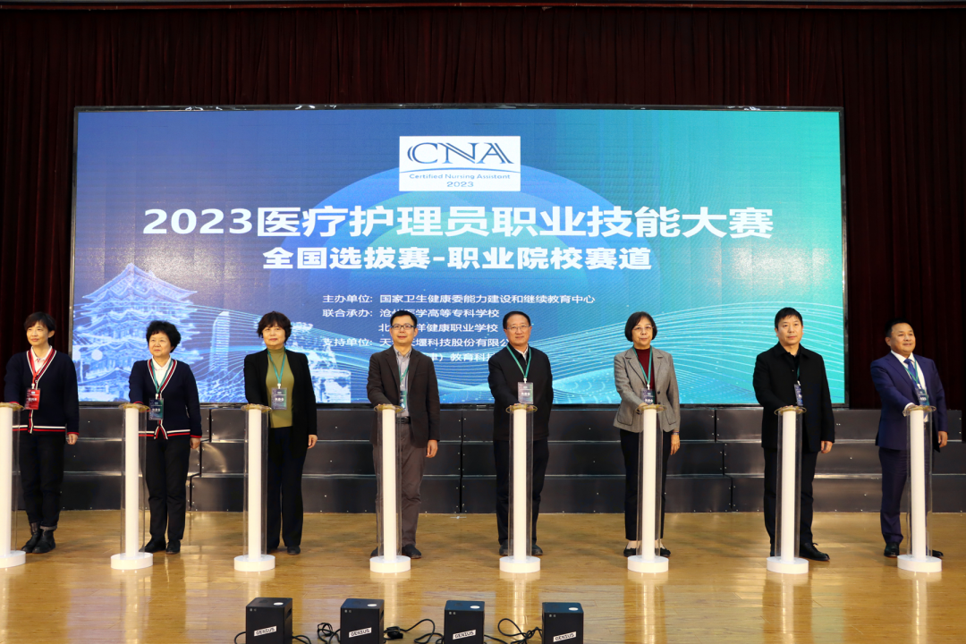 2023年12月1日,由國家衛生健康委能力建設和繼續教育中心主辦,滄州醫學(xué)高等專(zhuān)科學(xué)校、北京百洋健康職業(yè)學(xué)校聯(lián)合承辦,天津天堰科技股份有限公司、慧醫(天津)教育科技有限公司等單位協(xié)辦的首屆醫療護理員職業(yè)技能大賽(職業(yè)院校賽道)全國選拔賽開(kāi)幕式在滄州醫學(xué)高等專(zhuān)科學(xué)校隆重舉行。